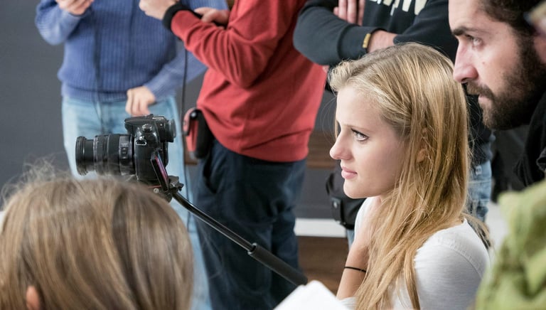 Shooting on set. Real roles, real responsibilities, working with camera, sound, and direction.